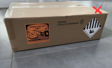 说明:缺少锂电池标记;普通纸板箱不是UN箱。